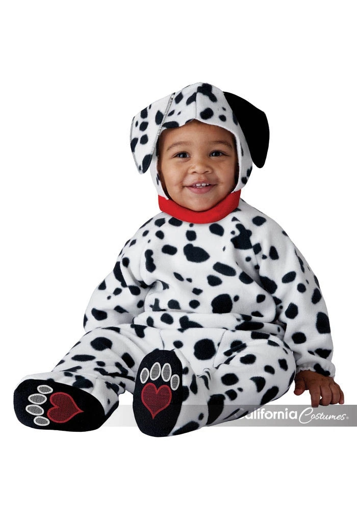 Your baby is sure to be absolutely adorable in this Dalmatian Costume this Halloween. This fleece jumpsuit comes with feet in, attached hood and of course it is covered in black spots.