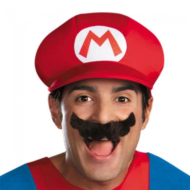 Includes: Jumpsuit with padded belly, hat, pair of gloves and faux mustache.
