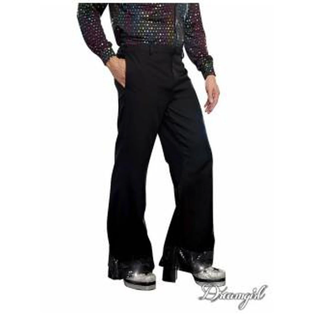 - Black pants w/ sparkling cuffs made from dotted shiny foil on the hem and an elastic back waistline for comfort