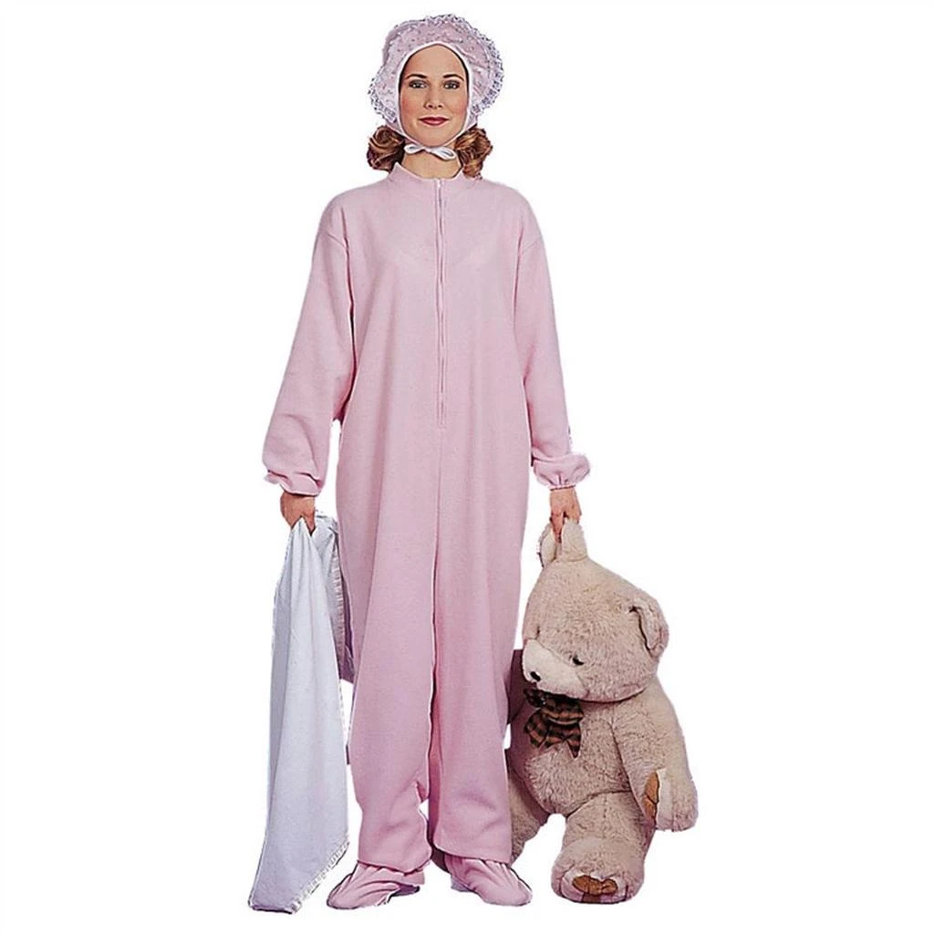 The Pink Pajamas Costume includes a full body footsie pajamas and matching bonnet.