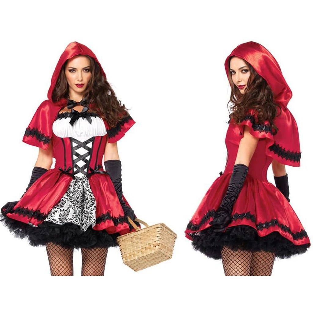 Includes a Satin and brocade peasant dress with woven ribbon venetian lace trim and matching hooded cape.