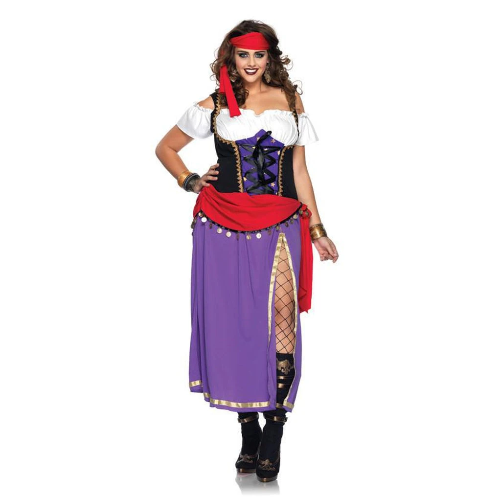 Includes: Coin trimmed peasant dress with high slit skirt and matching head scarf.