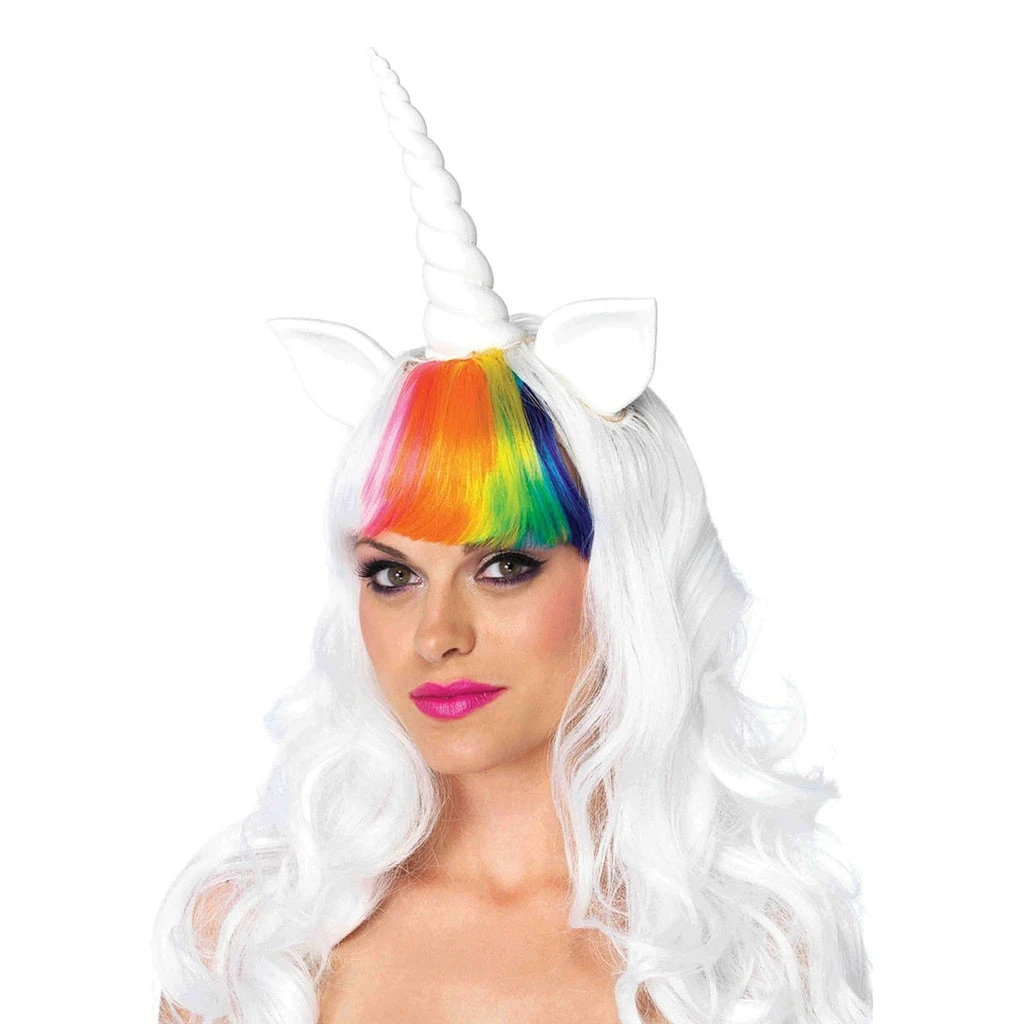 2 PC. Unicorn kit, includes long wavy unicorn wig with adjustable elastic strap and matching rainbow tail.