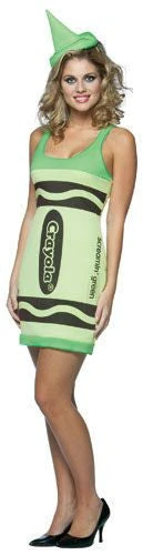 The Crayola Crayon Costume includes a full length tank top dress with crayon logo and crayon point headpiece.
