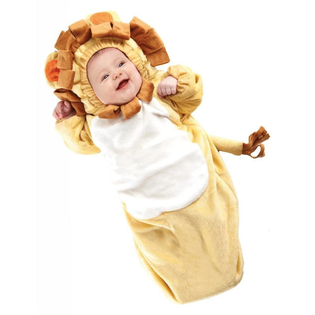 Our baby lion costume bunting includes a plush bunting with an attached hood.